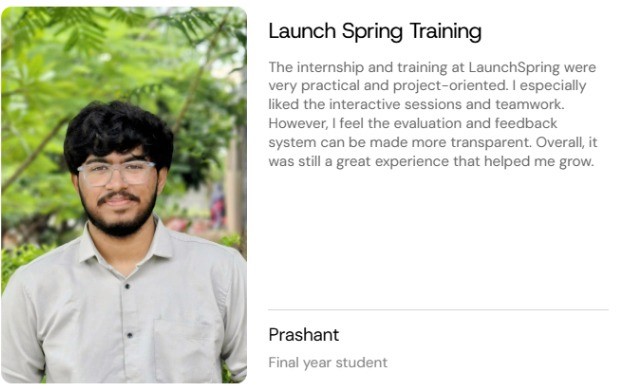 This one-month internship with Launchspring will be a hands-on learning experience, giving you real-world IT exposure and the opportunity to work on a live project. It’s a life-changing program designed to kickstart your career in the tech industry.
